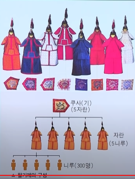 누르하치는 ‘만주’라는 용어를 사용하였고, 만주문자를 만들었다. 그리고 8기군을 조직(6만명)하였으며, 1616년에 대금(후금)을 건국하였다.